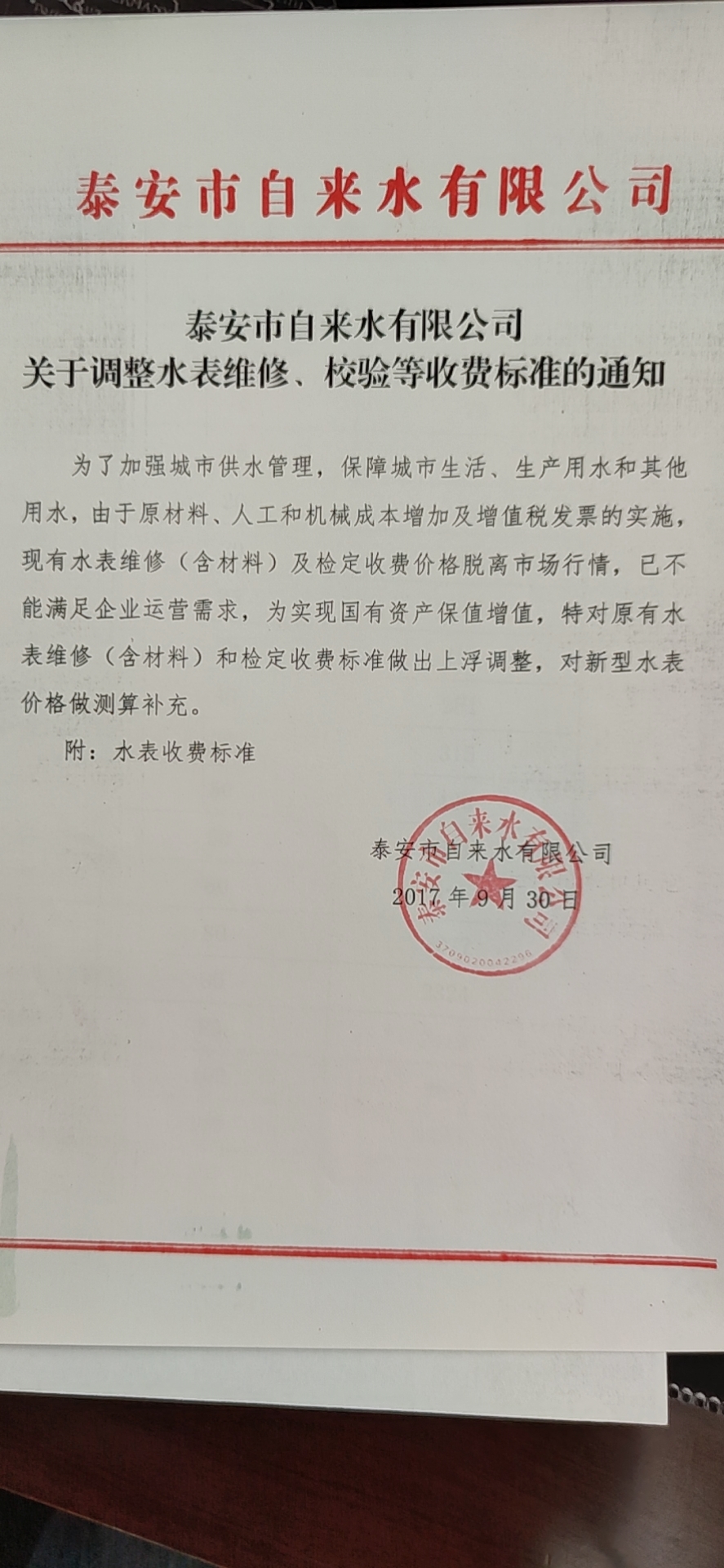 您当前位置》供水要闻》关于调整水表维修、校验等收费标准的通知