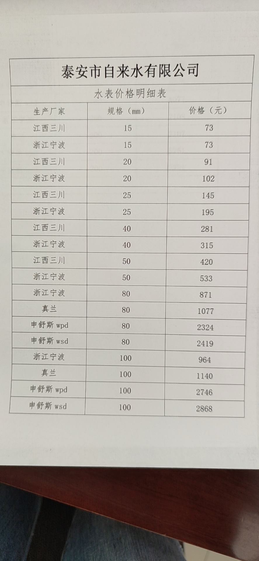 泰 安 市 自 来 水 有 限 公 司