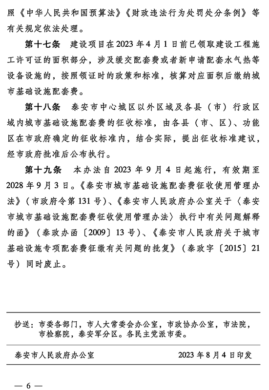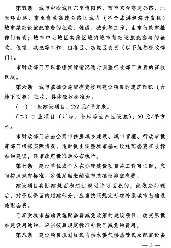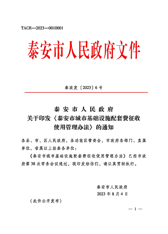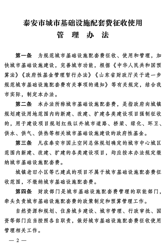 您当前位置》政策法规》泰安市人民政府关于印发《泰安市城市基础设施配套费征收使用管理办法》的通知
