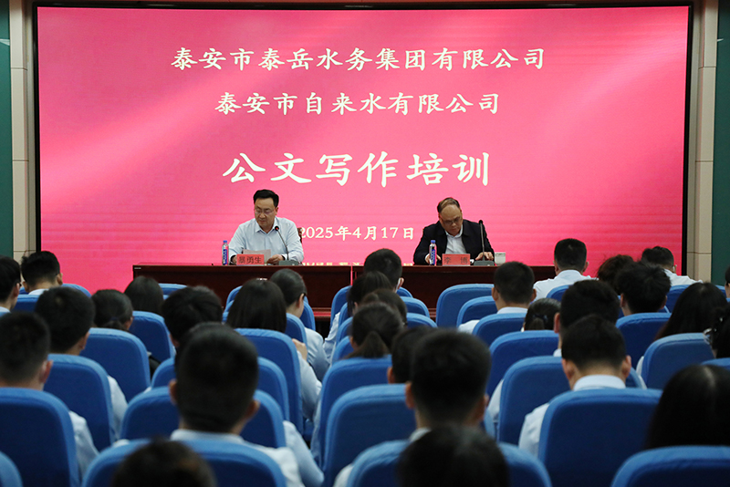4月17日,泰山城建集团权属泰安市自来水有限公司开展公文写作专题培训,邀请市委办公室研究室一级主任科员李博现场授课。公司党委副书记、纪委书记暴勇生主持活动,各部门单位宣传工作负责人、通讯员及青年工作小组成员等80余人参加培训。