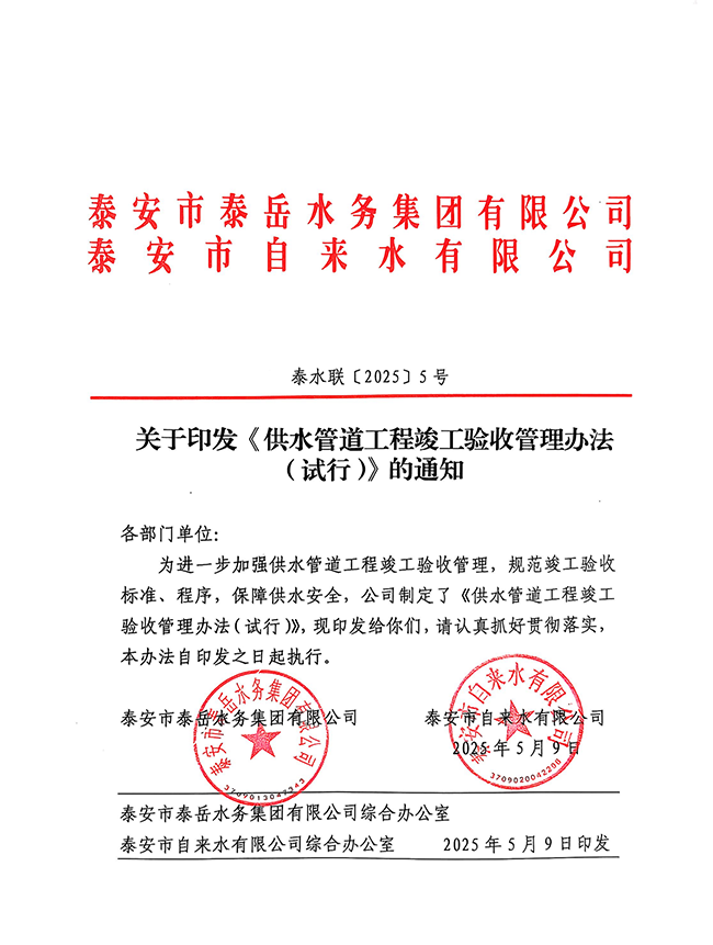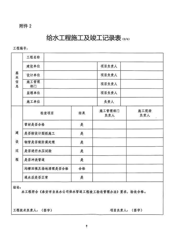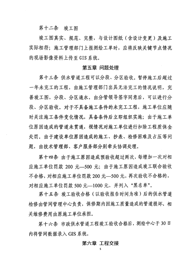 您当前位置》政策法规》泰安市自来水有限公司给水管道工程施工及验收规定