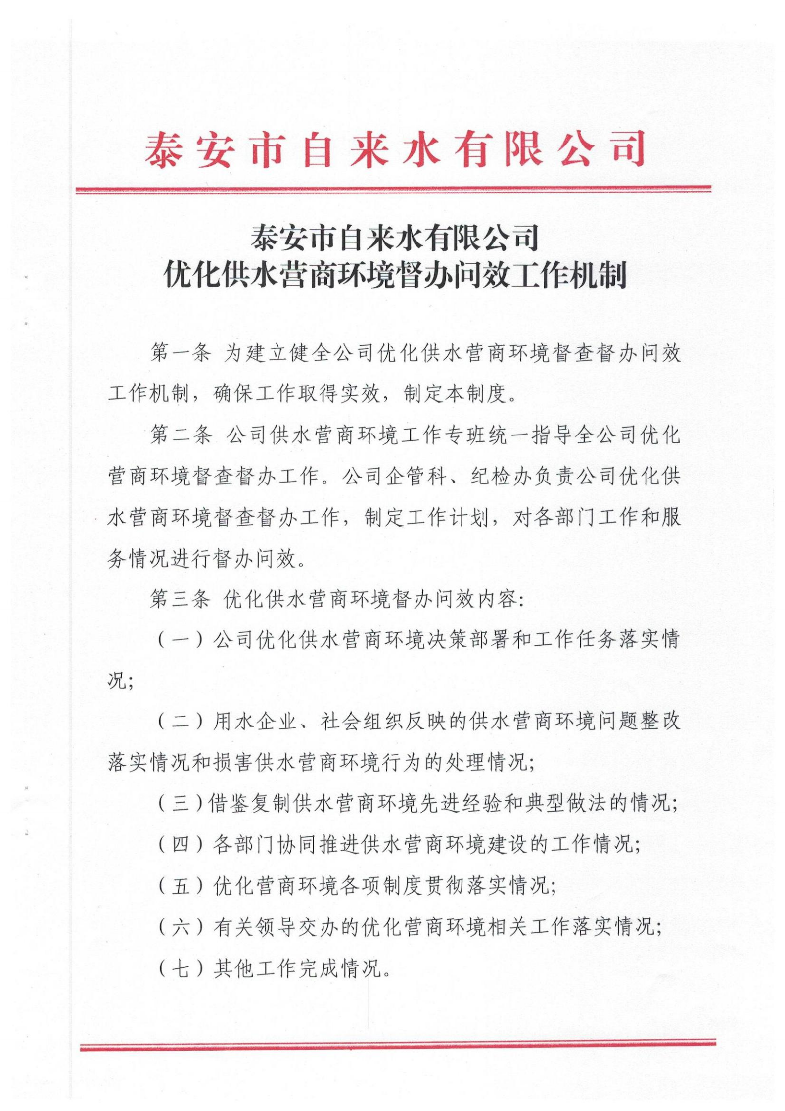 泰安市自来水有限公司优化供水营商环境督办问效工作机制