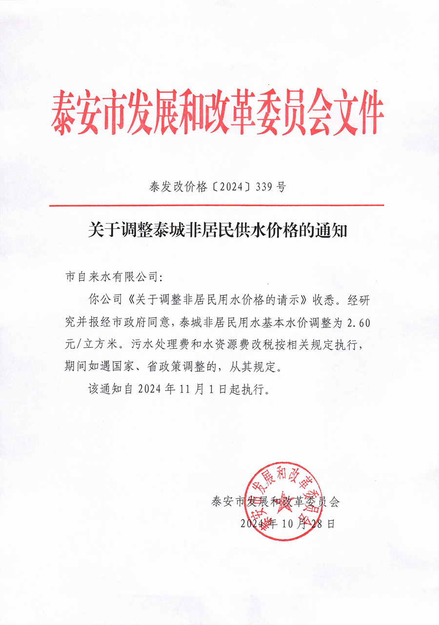 泰 安 市 自 来 水 有 限 公 司 水 费 标 准