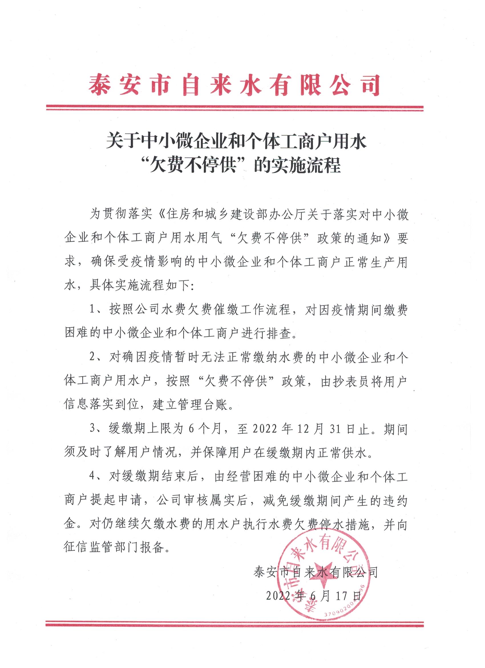 您当前位置》政策法规》关于中小微企业和个体工商户用水“欠费不停供”的实施流程