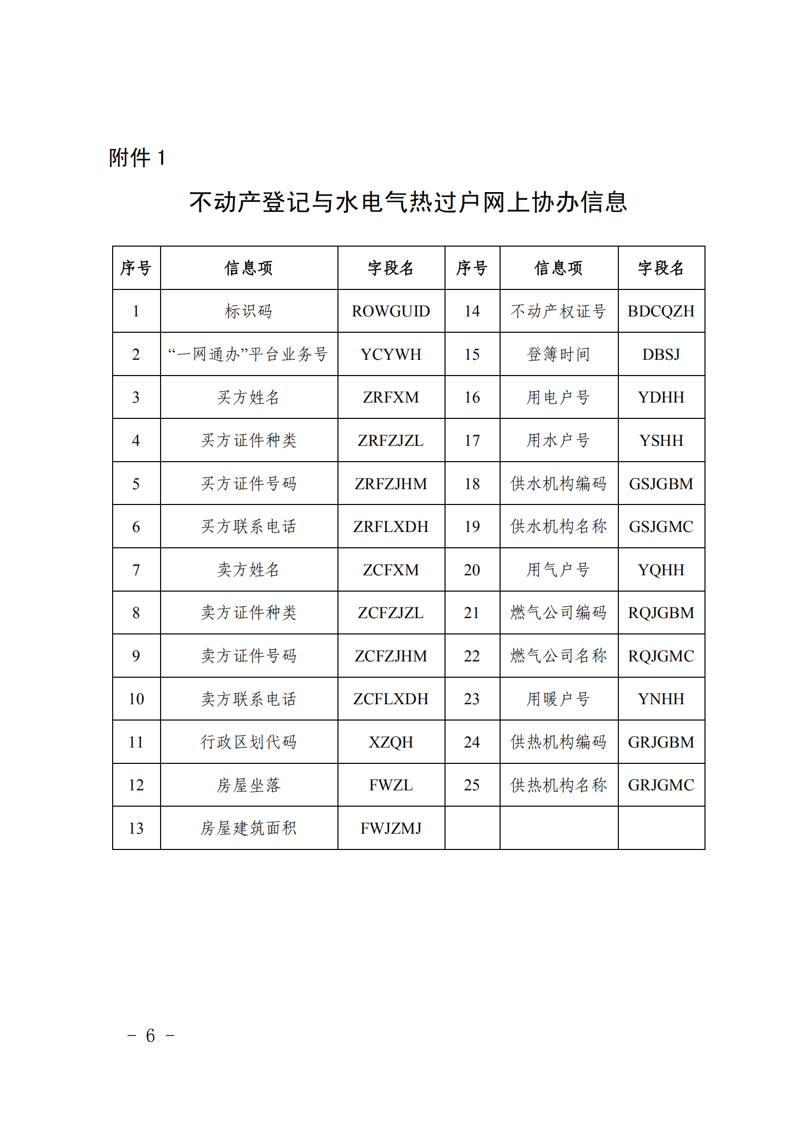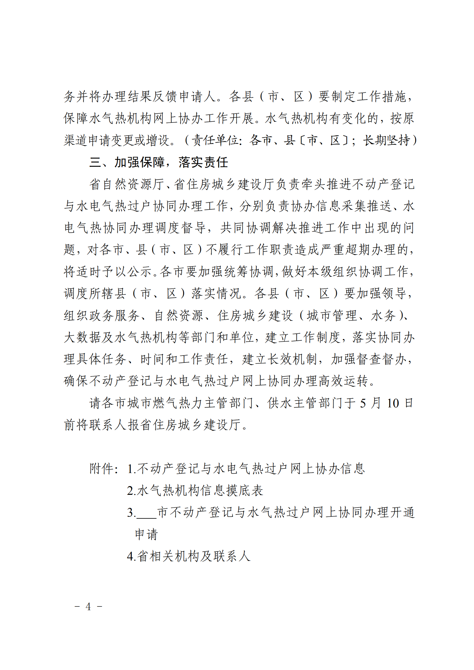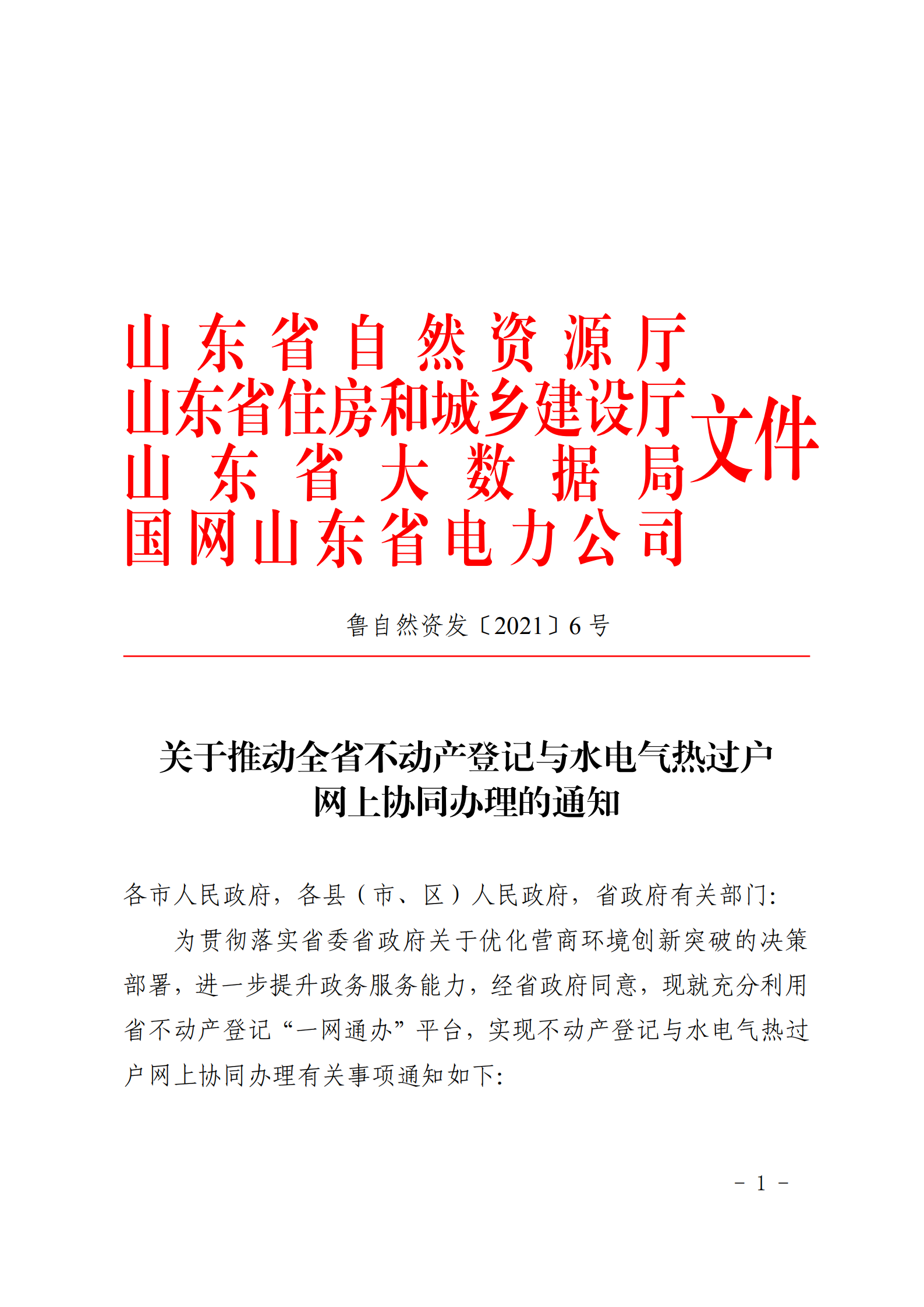 关于推动全省不动产登记与水电气热过户 网上协同办理的通知